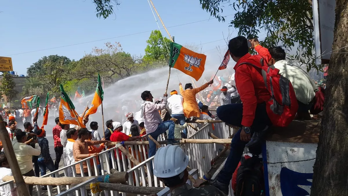 शहर में धारा 144 लागू कर दिया गया है। प्रशासन लगातार भीड़ को वापस जाने के लिए लाउडस्पीकर से ऐलान कर रही है। हालांकि, भीड़ पर यह बेअसर है। इस बीच, एक महिला भाजपा नेत्री ने बैरिकेडिंग को तोड़ दिया है, जिन्‍हें पुलिस ने गिरफ्तार कर लिया है। भीड़ पर नकेल कसने के लिए वाटर कैनन से पानी की बौछारें की गईं, लेकिन भाजपा कार्यकर्ता टस से मस नहीं हुए।
