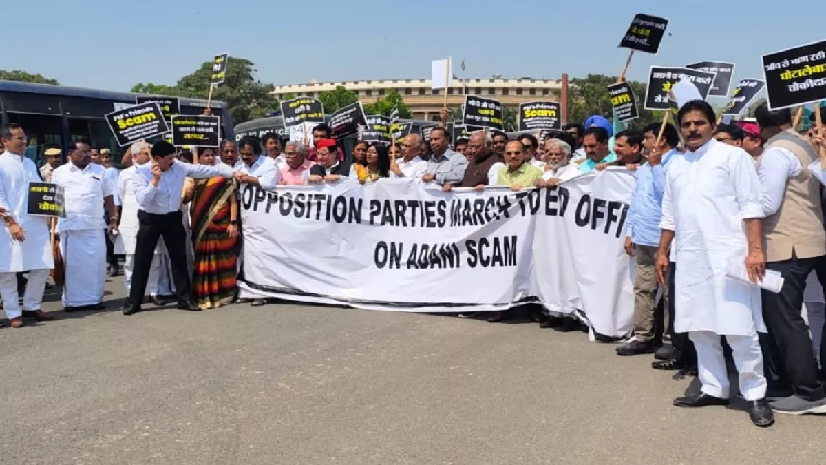 कांग्रेस अध्यक्ष मल्लिकार्जुन खरगे ने कहा, “हम सभी अदाणी घोटाले में एक ज्ञापन सौंपने के लिए ईडी निदेशक से मिलने जा रहे हैं। सरकार हमें विजय चौक के पास कहीं नहीं जाने दे रही है, उन्होंने हमें रोक दिया है।” बता दें कि इससे पहले सोमवार और मंगलवार को हंगामे के चलते संसद के दोनों सदनों में काम नहीं हो पाया।