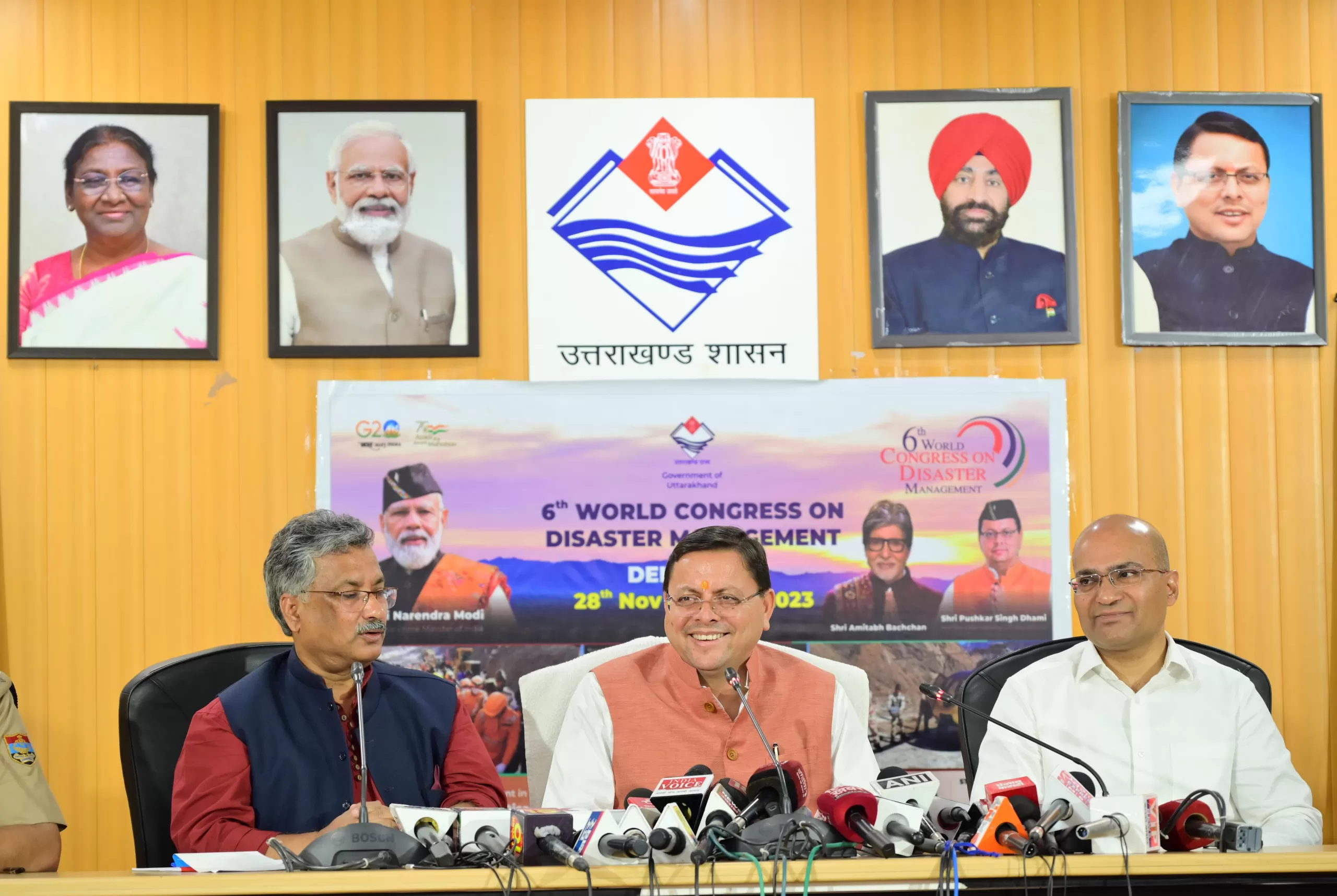 देहरादून: 6th Global Disaster Management मुख्यमंत्री श्री पुष्कर सिंह धामी ने मंगलवार को सचिवालय, देहरादून स्थित मीडिया सेंटर में 6वाँ वैश्विक आपदा प्रबंधन सम्मेलन के सम्बन्ध में प्रेस वार्ता की। इस दौरान वैश्विक आपदा प्रबंधन सम्मेलन के लिए अमिताभ बच्चन के वीडियो संदेश का प्रसारण भी किया गया। मुख्यमंत्री श्री पुष्कर सिंह धामी ने बताया कि राज्य सरकार द्वारा 6 वाँ विश्व आपदा प्रबंधन सम्मेलन ( 6th World Congress on Disaster Management) दिनांक 28 नवंबर से 01 दिसंबर 2023 तक देहरादून में उत्तराखण्ड राज्य आपदा प्रबंधन प्राधिकरण, डी.एम.आई.सी.एस. हैदराबाद तथा उत्तराखण्ड राज्य विज्ञान एवं प्रौद्योगिकी परिषद (यू कॉस्ट) के संयुक्त तत्वावधान में आयोजित किया जा रहा है।