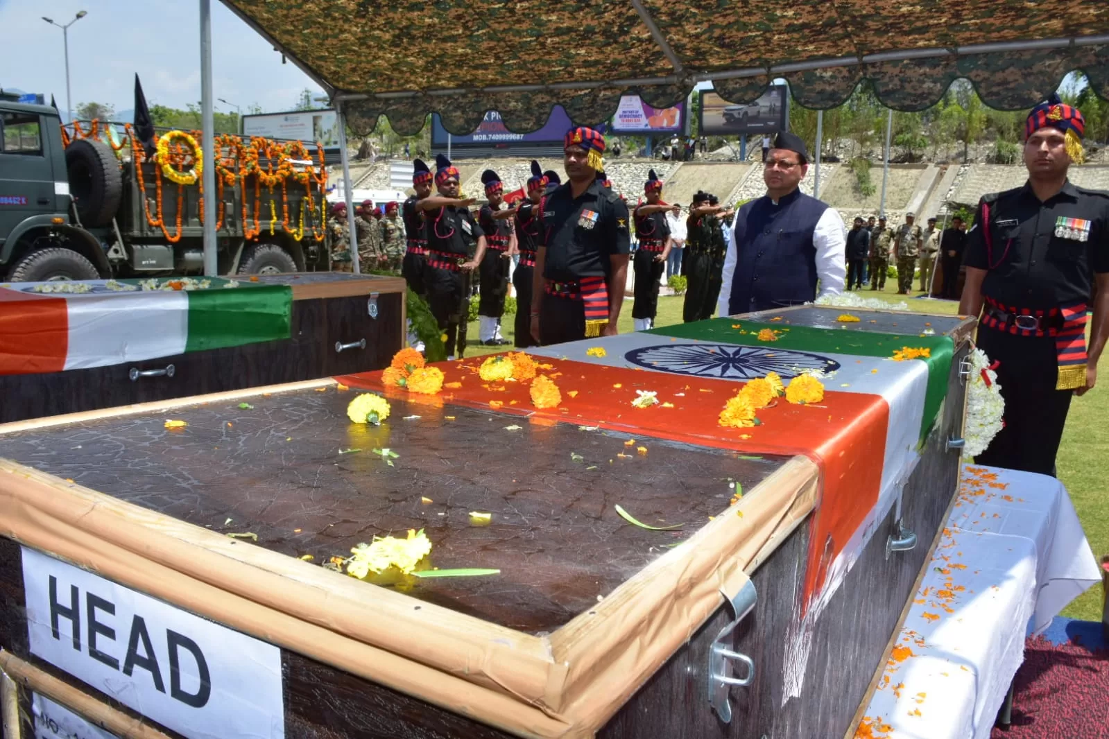 देहरादून: Operation Trinetra मुख्यमंत्री श्री पुष्कर सिंह धामी ने जौलीग्रांट एयरपोर्ट, देहरादून पहुंचकर जम्मू कश्मीर में चल रहे ऑपरेशन त्रिनेत्र (Operation Trinetra) में शहीद हुए चमोली निवासी लांस नायक रुचिन सिंह रावत एवं सिरमौर, हिमाचल प्रदेश निवासी शहीद प्रमोद नेगी के पार्थिव शरीर पर पुष्पचक्र अर्पित कर उन्हें श्रद्धांजलि अर्पित की।