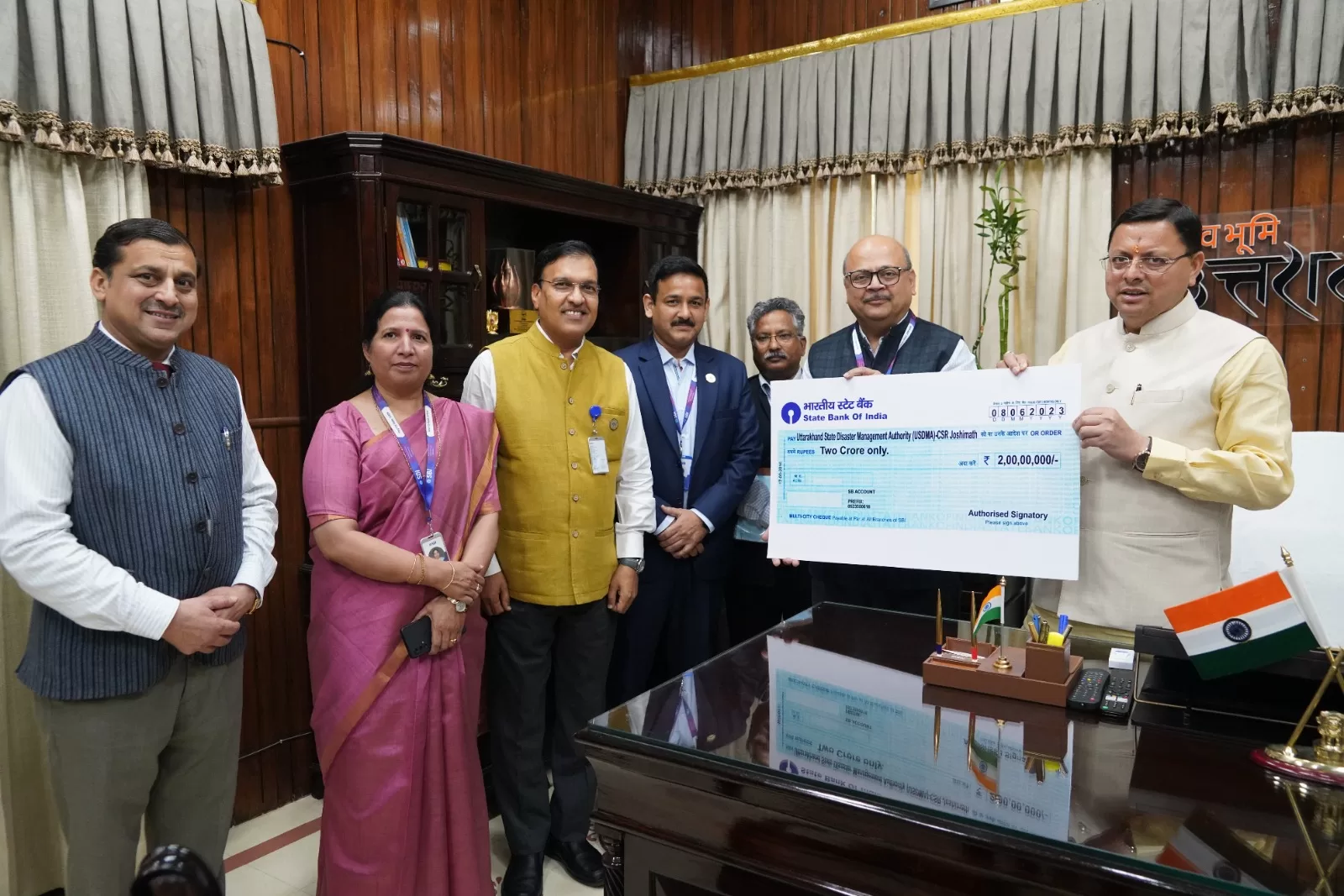 देहरादून: Joshimath landslide जोशीमठ में भू-धंसाव वाले क्षेत्र से विस्थापित लोगों के राहत और पुनर्वास के लिए भारतीय स्टेट बैंक द्वारा गुरूवार को उत्तराखण्ड राज्य आपदा राहत कोष में 02 करोड़ रूपये की आर्थिक सहायता प्रदान की गई।